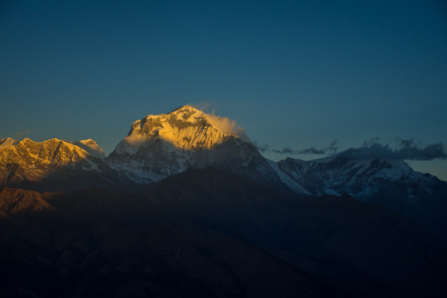 Dhaulagiri (8,167m), the world’s seventh-highest mountain, is located in north-central Nepal. The name ‘Dhaulagiri’ is derived from the Sanskrit word ‘dhavala’ which means “White” and giri is “Mountain”. Dhaulagiri’s crest stretches for thirty miles, lending structure to its otherwise tangled topography of twisting ridges, glaciers, and ice falls. Along the main crest, 4 pyramid-shaped like peaks rise from east to west above 25,000 ft.